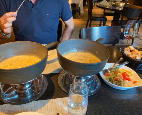 Es gibt neben den von uns (mehrfach) getesteten Käsefondues in verschiedenen Ausführungen die klassischen Fleischfondues, aber auch klassische Steakgerichte. Die Weine waren super und der Service supernett und zuvorkommend. Da es nur eine begrenzte Anzahl an Tischen gibt, solltet ihr unbedingt vorher reservieren, denn es ist in der Hauptsaison fast immer ausgebucht.